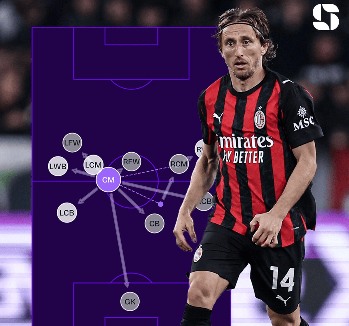 Squawka数据统计2024买球站体育信息,莫德里奇本赛季意甲也曾完成了368次传球,是联赛中传球次数最多的球员。