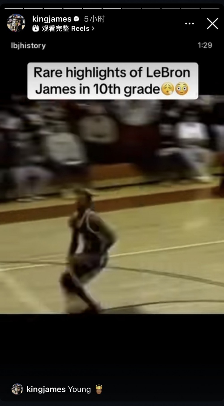 詹姆斯转发了一段他在高二赛季工夫上记载短片,包含了他的比赛精彩镜头和采访片断。